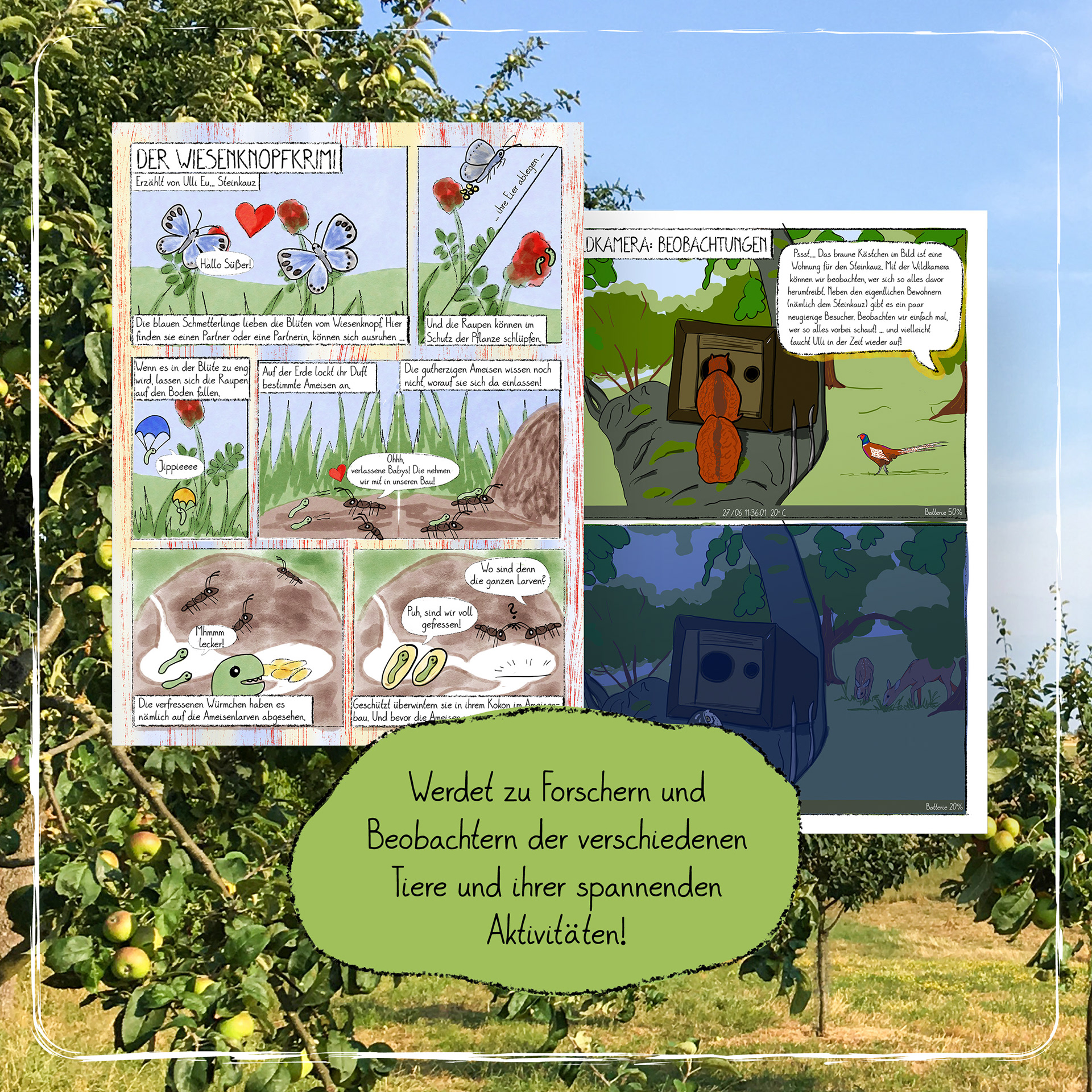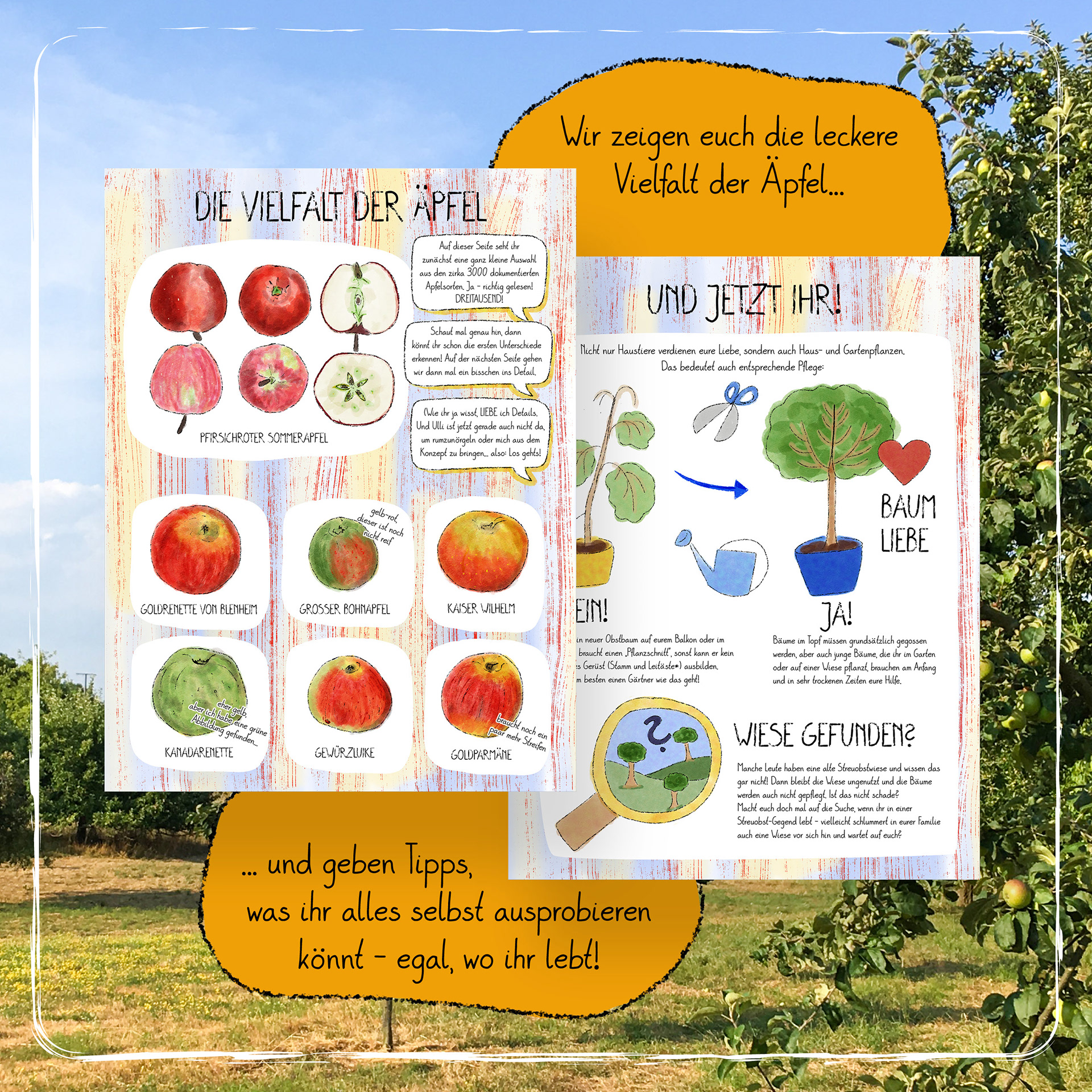 Die Natur vor eurer Haustür und Streuobstwiesen insbesondere neu entdecken wollt - Aktionen, Spiele und Tipps bekommen möchte, was man alles Schönes draußen machen kann - Liebevoll und verständlich aufbereitete wissenschaftliche Infos über Biodiversität, Naturschutz, Ernährung und Kulturlandschaften kennen lernen wollt.