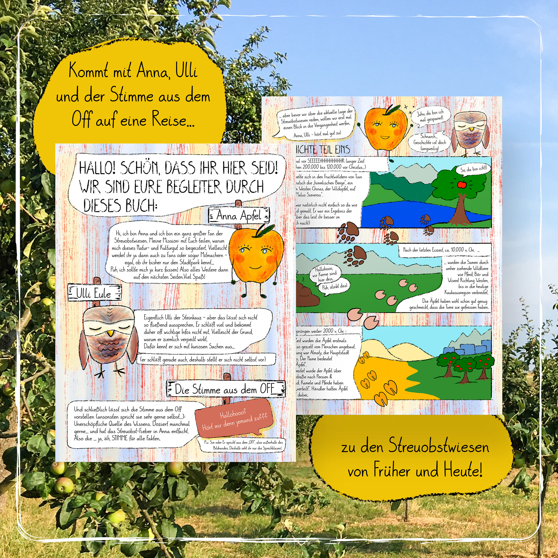 Kommt mit Anna Apfel, Ulli Steinkauz und der Stimme aus dem Off auf eine Reise zum Naturschatz Streuobstwiese - Videoerklärung weiter unten!